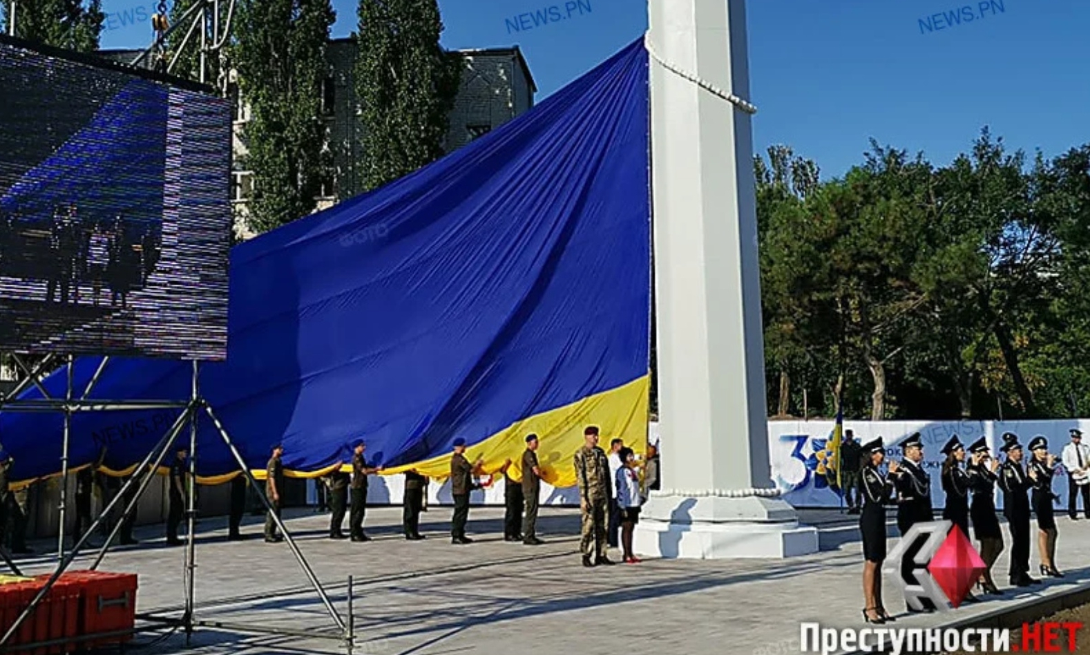 В Николаеве в понедельник, 23 августа, в честь Дня Флага и накануне Дня Независимости Украины подняли один из самых больших флагов Украины, — сообщает издание «Преступности.НЕТ».