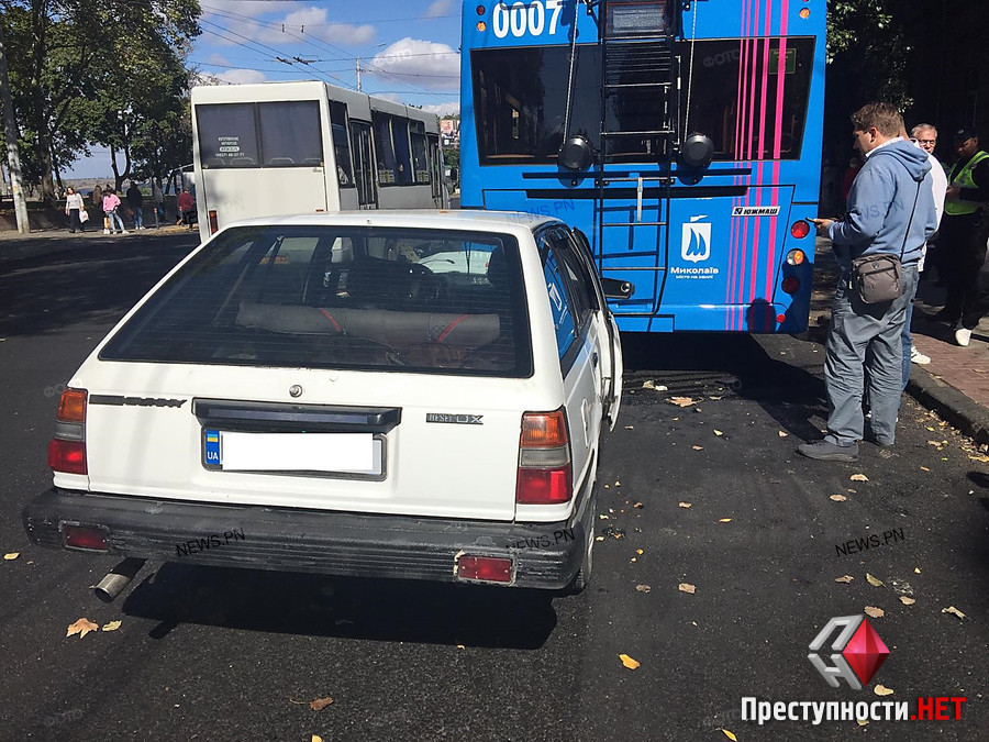 В понедельник, 20 сентября, в Николаеве на улице Пушкинской произошло дорожно-транспортное происшествие с участием автомобиля Nissan и нового троллейбуса, который сегодня впервые вышел на маршрут, сообщает издание «Преступности.НЕТ».