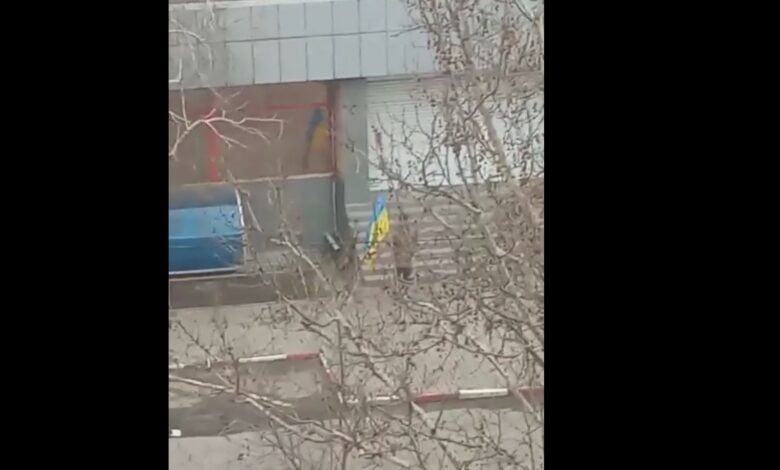 В Корабельном районе дедушка несколько часов простоял на улице с флагом Украины (видео)