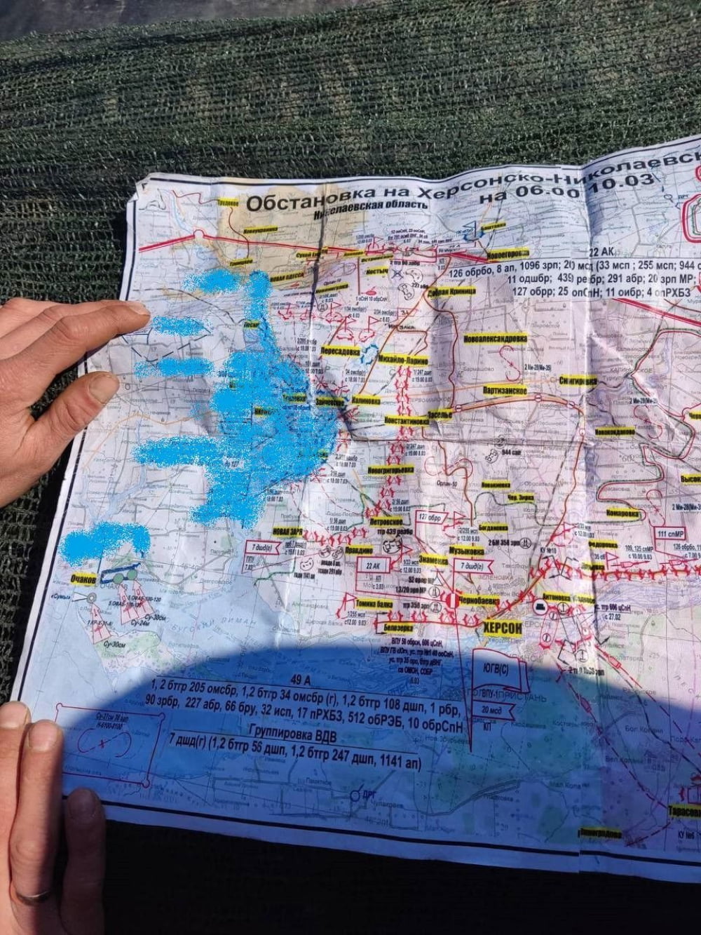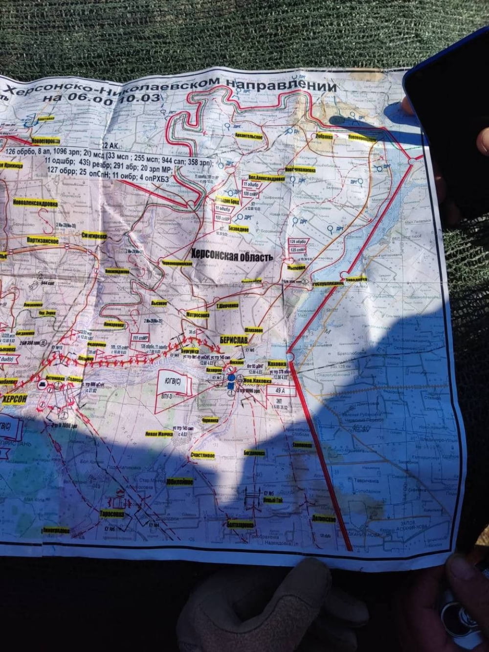 Но детально ситуацию обрисовала карта, которую захватили бойцы ВСУ не так давно. Рабочая карта одного из офицеров 49-й армии, который совершил специальную операцию по прекращению метаболизма.