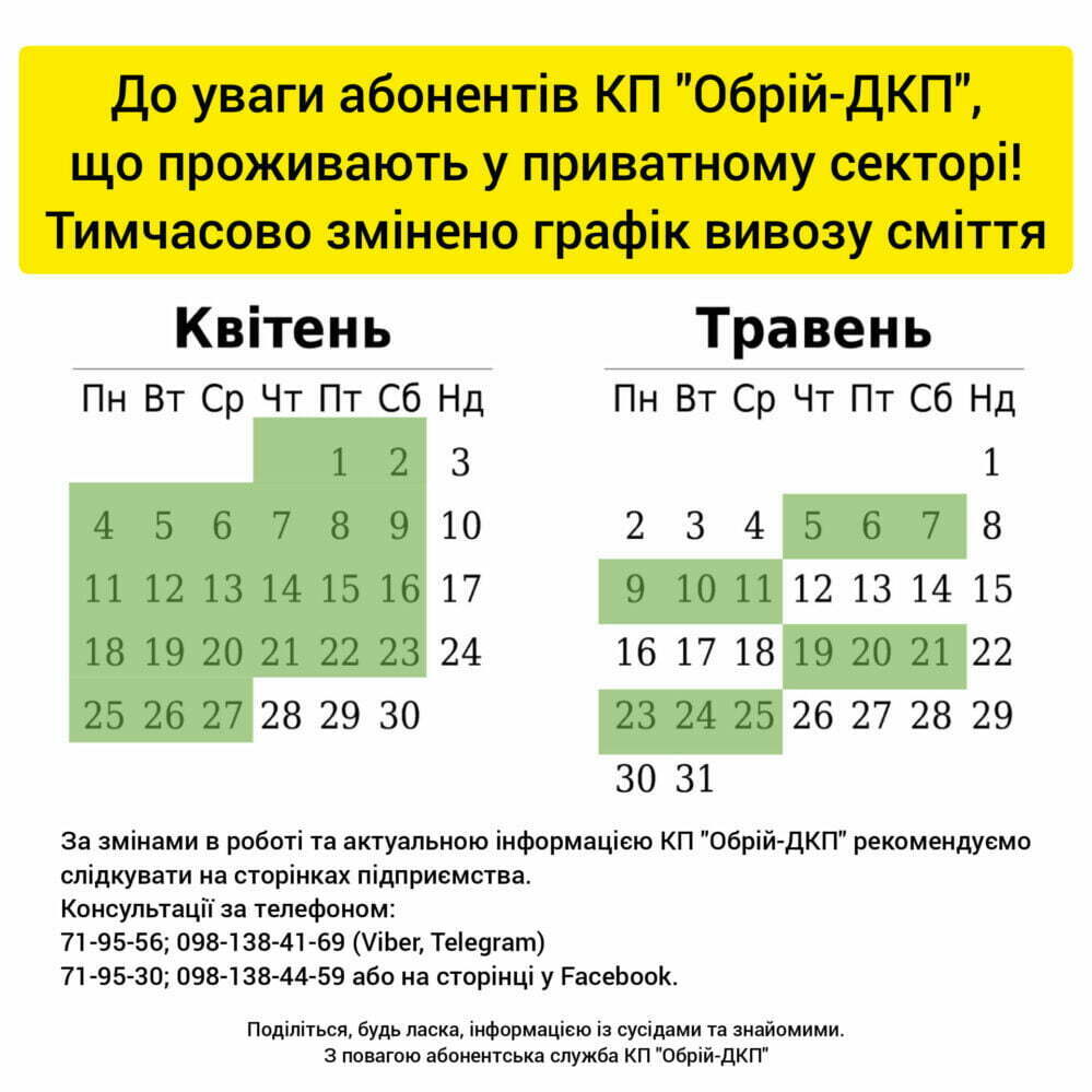 «День тижня збору сміття залишається незмінним. Для прикладу, якщо ми забирали у вас сміття в п’ятницю, то дні вивозу такі: 22 квітня, 6 травня, 20 травня. Виставляти, як завжди, до 8 ранку біля своїх воріт», — йдеться у повідомленні.