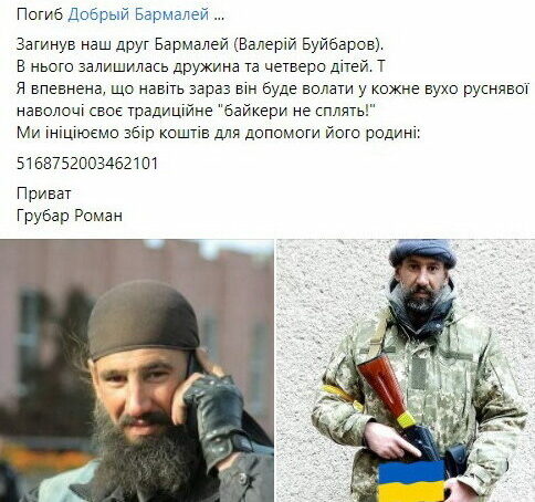 «Загинув наш друг Бармалей (Валерій Буйбаров). В нього залишилась дружина та четверо дітей.