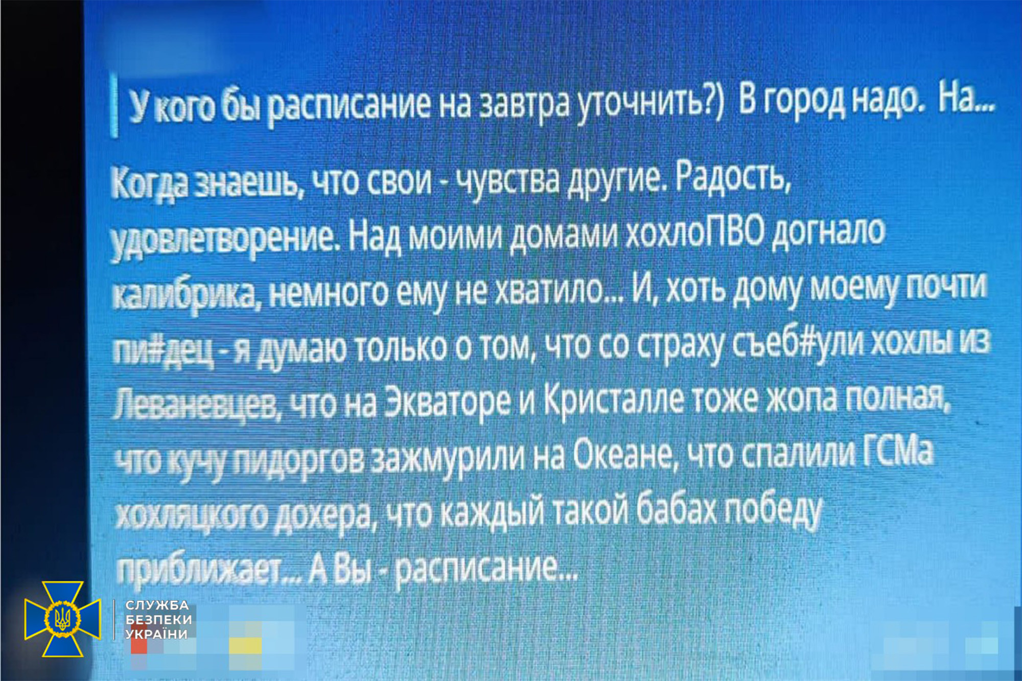 «И хоть дому моему почти п*здец, я думаю только о том, что со страху с*ебнули хо*лы из Леваневцев, что на Экваторе и Кристалле полная ж*па, что кучу п*доргов зажмурили на Океане, что спалили ГСМа хо*лятского до..ера, что каждый такой бабах победу приближает…»