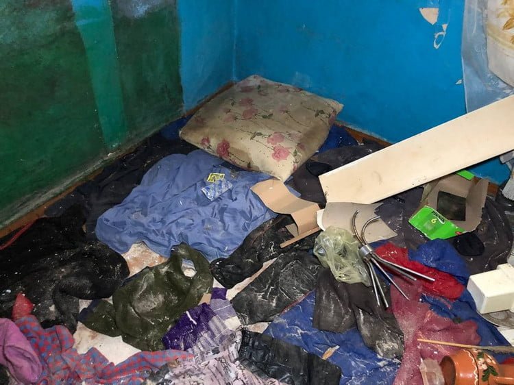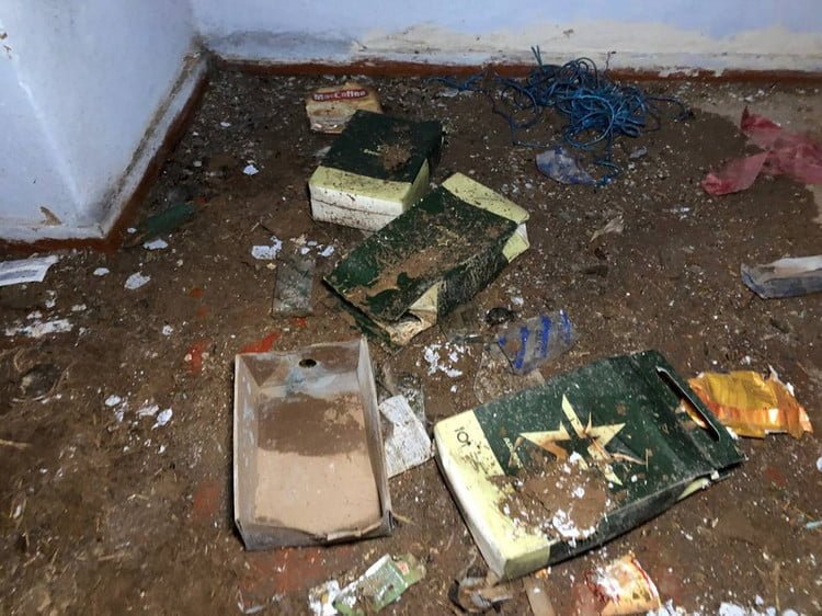 Владислав показывает, где оккупанты обустроили туалет, столовую и склад. Расстояние между помещениями не более пяти метров.