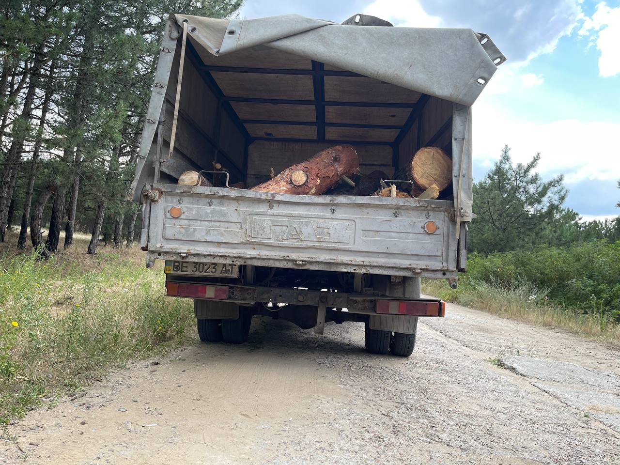 Во второй половине среды, 19 июля 2023 г, работниками сектора криминальной полиции отделения полиции №3 (Корабельного ОП) Николаевского РУП ГУНП в Николаевской области на дороге, которая служит границей между территорией Корабельного района г. Николаева (возле Балабановского кладбища) и территорией Галициновской ОТГ Николаевского (бывшего Витовского) района Николаевской области, был остановлен грузовой автомобиль «ГАЗель» (гос. номер ВЕ 3023 АО), который вызвал подозрение у сотрудников полиции тем, что перевозил большие спиленные сосновые стволы дерева. Об этом в редакцию Кorabelov.info сообщил неравнодушный местный житель.