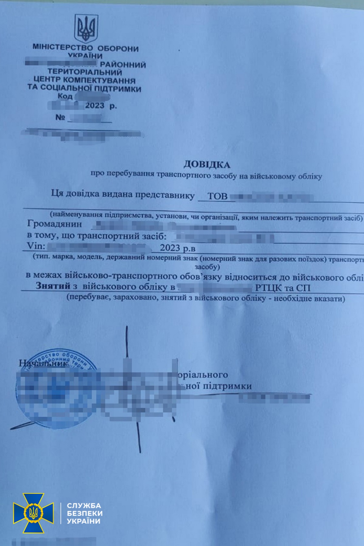 Взятка предназначалась за предоставление справок о снятии коммерческих транспортных средств с воинского учета. Этот документ необходим, чтобы переоформить автомобили в сервисных центрах МВД в условиях военного положения.