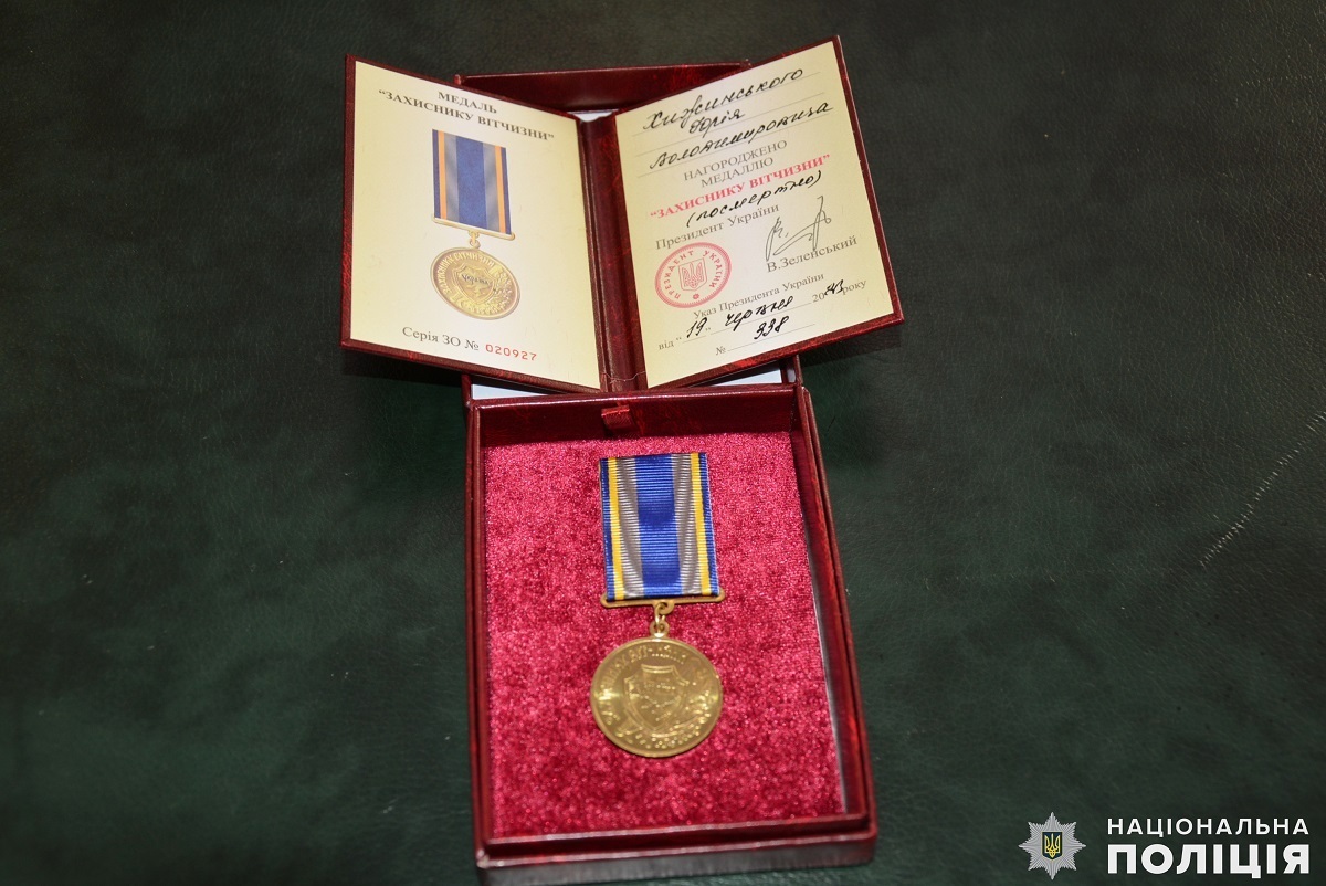 Медаль Юрия Хижинского за личное мужество, самоотверженность, верность военной присяге, добросовестное служение украинскому народу до последнего вздоха полицейского получил брат погибшего.