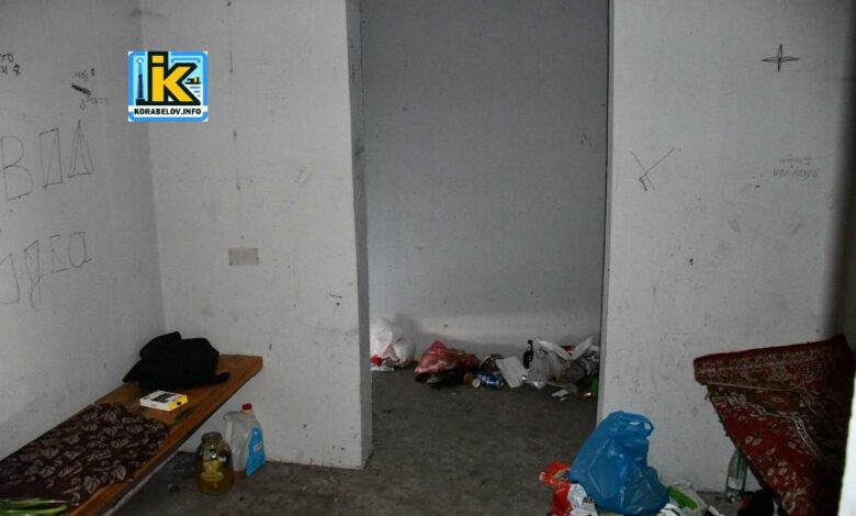 Korabelov.info в очередной раз проверили укрытия на остановках в Корабельном районе Николаева. Первой 18 мая 2024 года мы осмотрели сооружение на остановке «Океановская«. Здесь – ужасная вонь и куча мусора. Люди уверены, что помещение стало жильем для бездомных. И подтверждает это обустроенное спальное место из какого-то ковра, чья-то одежда и самодельный шпингалет, с помощью которого, вероятно, закрываются изнутри.