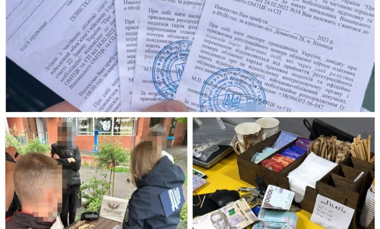 Сын чиновника обещал местному жителю «сделать» пакет документов, которые позволят избежать мобилизации и выехать из Украины. По оперативным данным, он предлагал подобную «помощь» и другим лицам. Во время обысков у него были изъяты пустые повестки, более десятка копий паспортов мужчин призывного возраста и наличные в разной валюте.