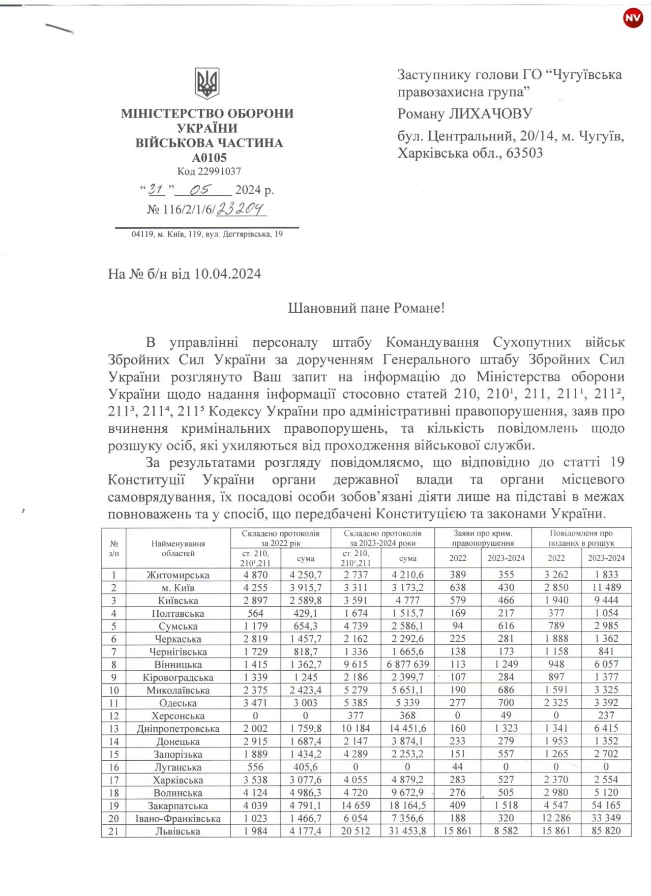 Количество протоколов по указанным статьям существенно возросло в течение 2023-2024 годов. За 1,5 года в целом по Украине ТЦК составили 130,1 тыс. админпротоколов на нарушителей. Последние уплатили штрафов на 150,3 млн грн. Больше всего протоколов за этот период составили во Львовской(20,5 тыс.), Закарпатской(14,6 тыс.) и Днепропетровской (почти 10,2 тыс.) областях.