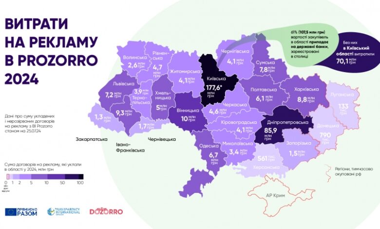 Эти расходы являются частью общей тенденции роста затрат на рекламу в Украине после начала полномасштабного вторжения России. За первый год войны (с 24 февраля 2022 г. до 24 февраля 2023 г.) рекламные договоры по стране составили 262 млн грн. Это существенно больше, чем в 2022 году, когда на рекламу через Prozorro потратили почти вдвое меньше, чем в довоенный 2021 год225 млн грн против 441 млн грн.