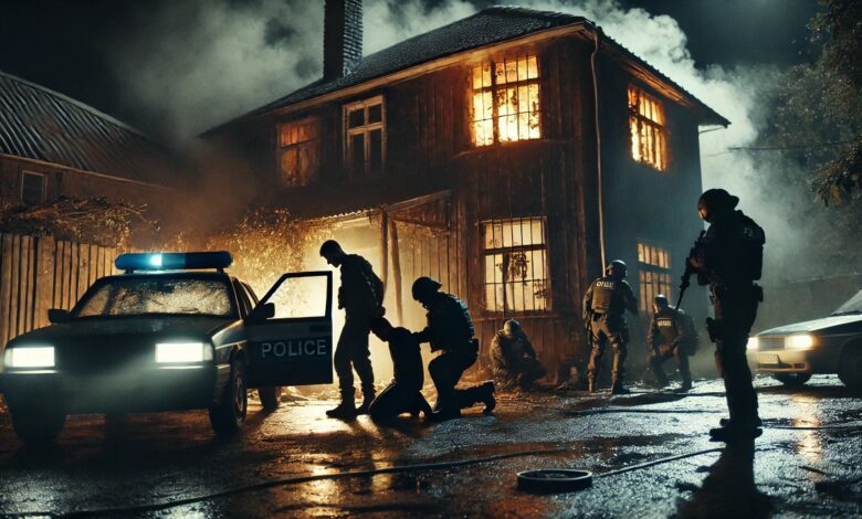 Ситуация быстро обострилась, когда молодой человек заметил полицейских. Он забаррикадировался в доме и начал обливать горючим комнаты, угрожая их поджечь. Полицейские попытались попасть в здание через окно, но злоумышленник облил одного из правоохранителей и пытался его поджечь.