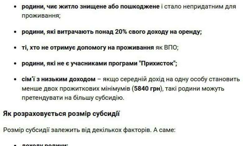 Правительство Украины объявило о запуске новой программы поддержки для внутренне перемещенных лиц (ВПЛ), которая позволит получить субсидию на аренду жилья. Для участия в программе необходимо заключить договор аренды и подать заявление в Пенсионный фонд Украины или ЦНАП.