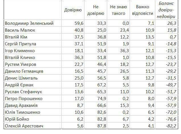 | Алексей Арестович | 5,6 | 87,8 | 2,5 | 4,1 | -82,2 |