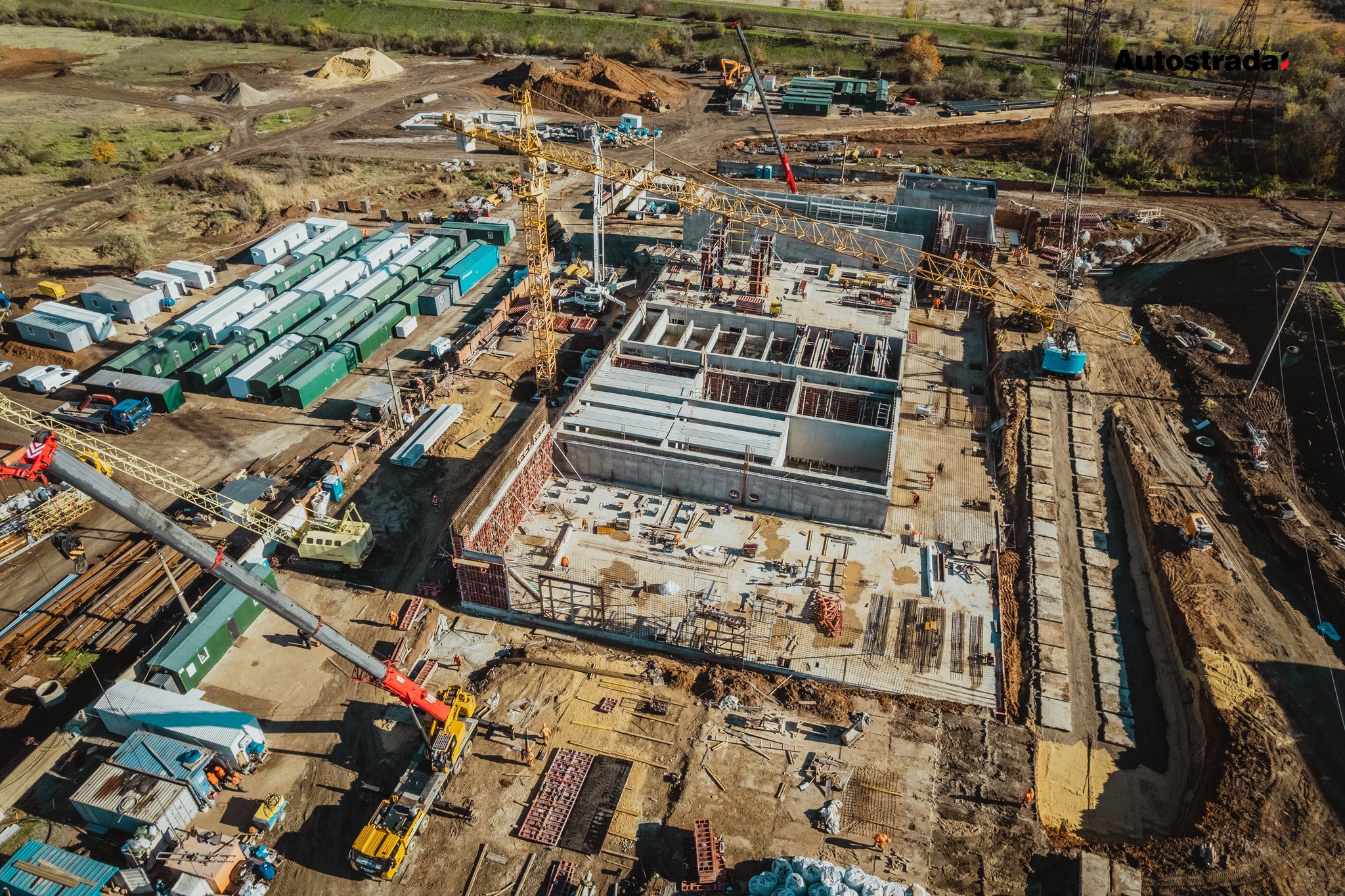На объекте круглосуточно работают более 500 специалистов и более 100 единиц техники. Сейчас продолжаются монтаж технологического оборудования, устройство монолитных конструкций, сборного железобетонного перекрытия и отделочные работы.
