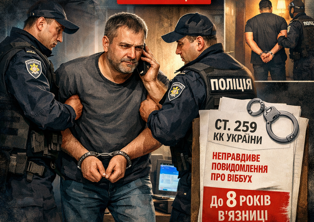 Следователи задержали злоумышленника в порядке ст. 208 УПК Украины и сообщили ему о подозрении по ч. 2 ст. 259 Уголовного кодекса Украины – заведомо ложное сообщение о подготовке взрыва.