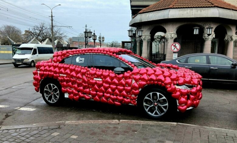 13 февраля в Николаеве на улице Соборной заметили автомобиль, оформленный специально к Дню святого Валентина.