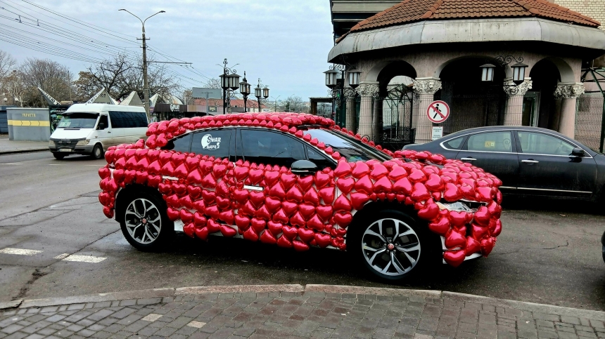 13 февраля в Николаеве на улице Соборной заметили автомобиль, оформленный специально к Дню святого Валентина.