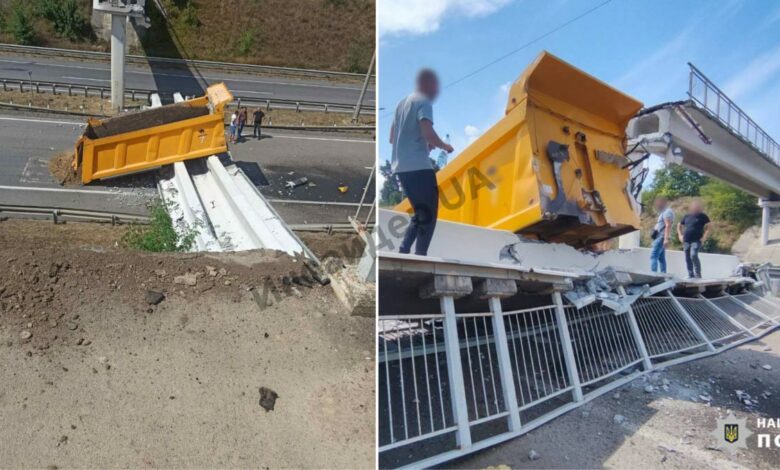 Возле Умани грузовик спровоцировал обрушение пешеходного моста: движение в сторону Киева перекрыто