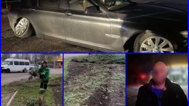 Ночью водитель BMW в наркотическом опьянении повредил газон кольца в Николаеве. От полиции он не убежал, а газон – точно не спасся.