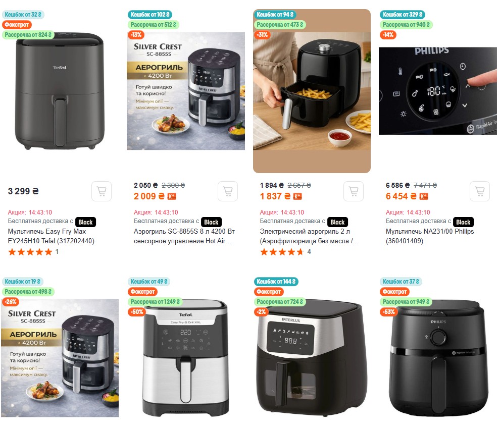 Аерогрили на Kasta: ассортимент моделей, скидки, кешбэк и специальные предложения