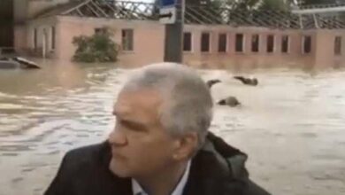 Появилось видео, как в затопленном Крыму за Аксеновым по лужам плыли спасатели, которым не хватило места в лодке