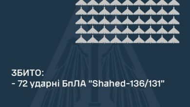 Повітряні Сили України збили 72 «Shahed» за ніч